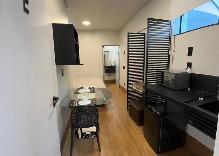 Das 22 m² große Apartment 2Kitnet Aconchegante No Coracao Da Cidade Lavras liegt in unmittelbarer Nähe von verschiedenen Sehenswürdigkeiten der Gegend: Camara Municipal De Lavras befindet sich unter anderem 5 Fußminuten von hier entfernt. Die Gäste können WLAN und einen privaten Parkplatz vor Ort nutzen.